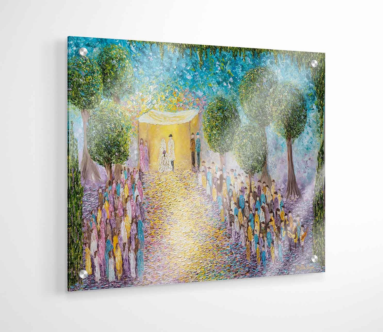 Beneath the chuppah, two neshamos are joined in sacred harmony. Surrounded by vibrant celebration, the painting invites the viewer to feel the depth of joy that accompanies the building of a bayit ne’eman. It expresses the beauty of continuity, reminding us that each union strengthens the eternal chain of the Jewish people.